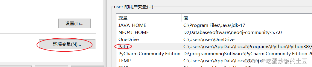 三、配置MySQL的环境变量,点击电脑属性,然后找到高级系统设置,点击环境变量,再将MySQL5.7版本中的bin的绝对路径加入到用户变量中的Path中(如果没有找到Path,可新建)如下:
