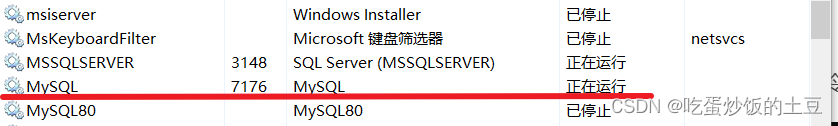 此时可以在任务管理器的服务中看到MySQL已经正常运行;如下:
