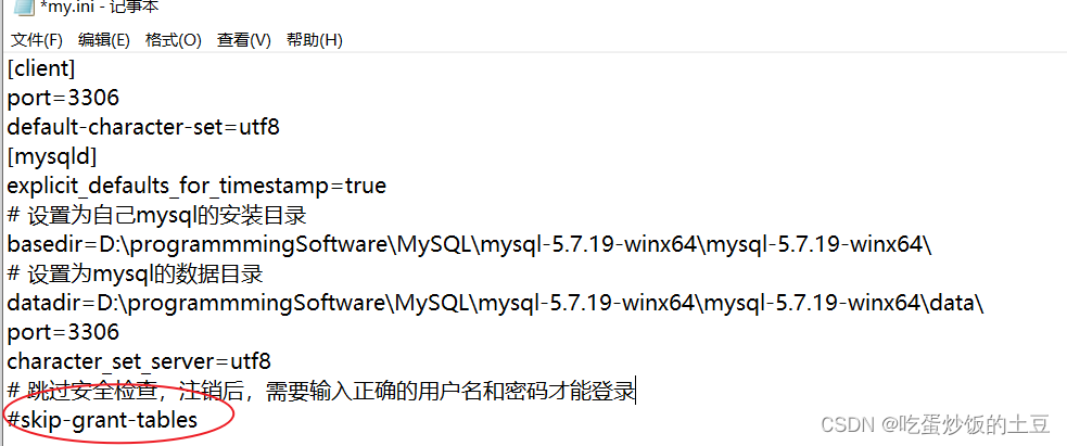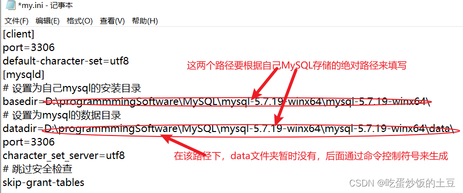 四、由于5.7版本不会自动生成 my.ini 文件,因此需要我们自己新建,并写入相应的内容,如下: