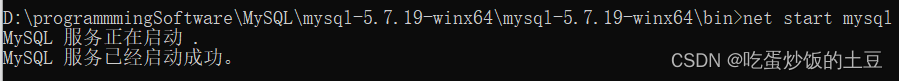 八、启动mysql服务,通过net start mysql命令【停止mysql服务:net stop mysql],如下:
