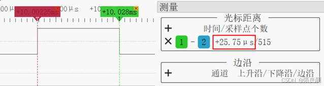 测量代码片段的运行时间 使用PA0和PA1两个通道采集外部信号,用不同方法测试ADC的转换时间。GPIO在ADC转换前为低电平,转换开始时为高电平,转换结束后为低电平使用AT-link进入调试,测量两个断点之间的时间差。添加DWT测量的C文件和H文件,在DEBUG下观察计数差值,利用差值计算得ADC转换时间。优点优点GPIO翻转法操作简单,通用性强精度受限于GPIO切换速度调试器跟踪法无其他代码的干预需特定的硬件支持DWT测量法无需外部测量工具配置过程相对复杂。