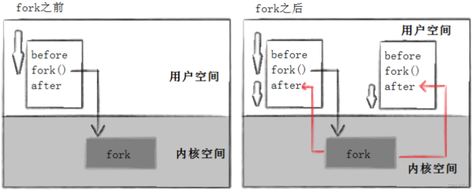 在linux中fork函数时非常重要的函数,它从已存在进程中创建一个新进程。新进程为子进程,而原进程为父进程。
