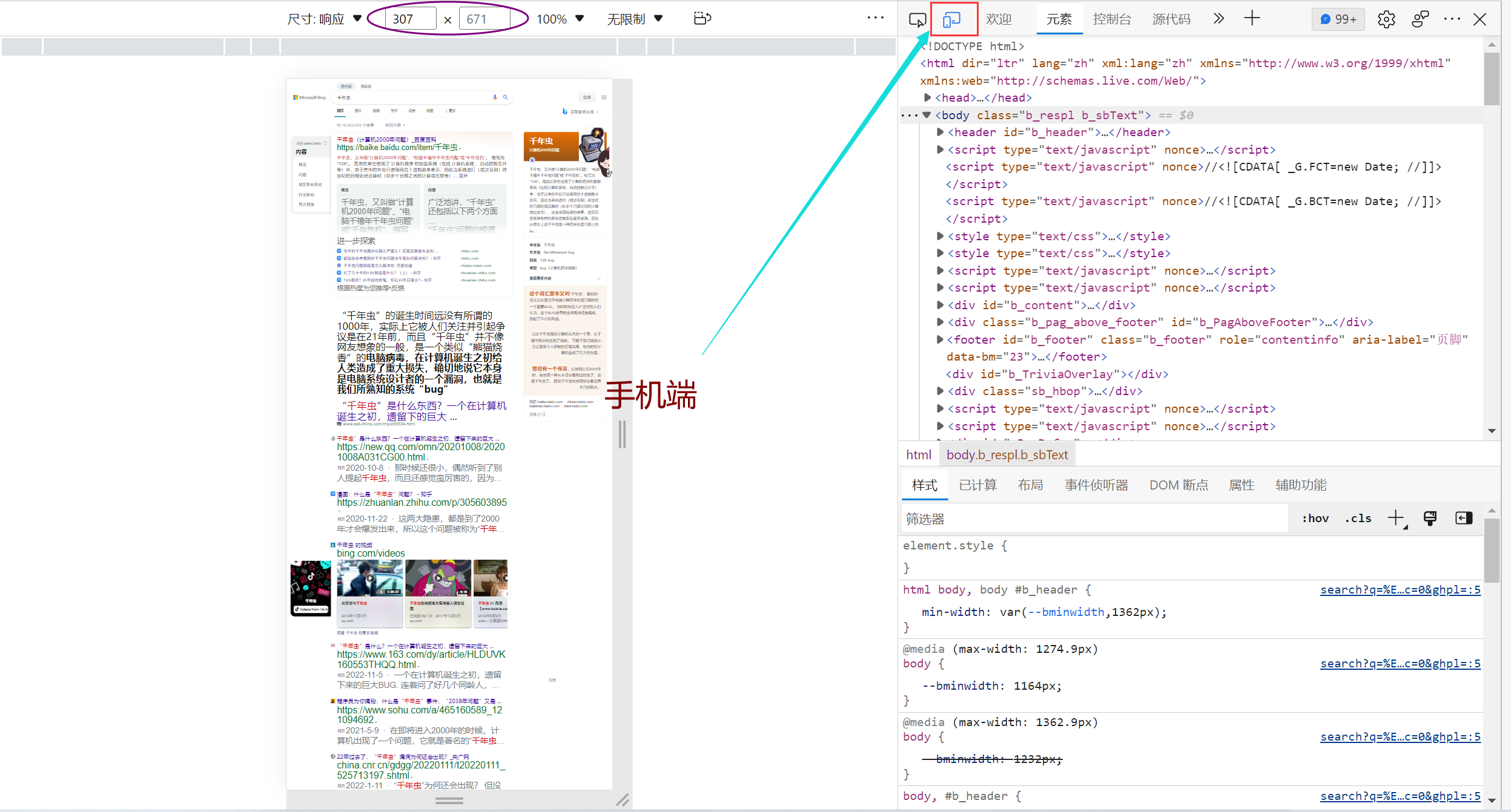 当我切换切换设备为手机端后,我把检查框往左拖动发现页面随着尺寸自适应生成了适合屏幕的大小,这就是弹性盒子的用法。