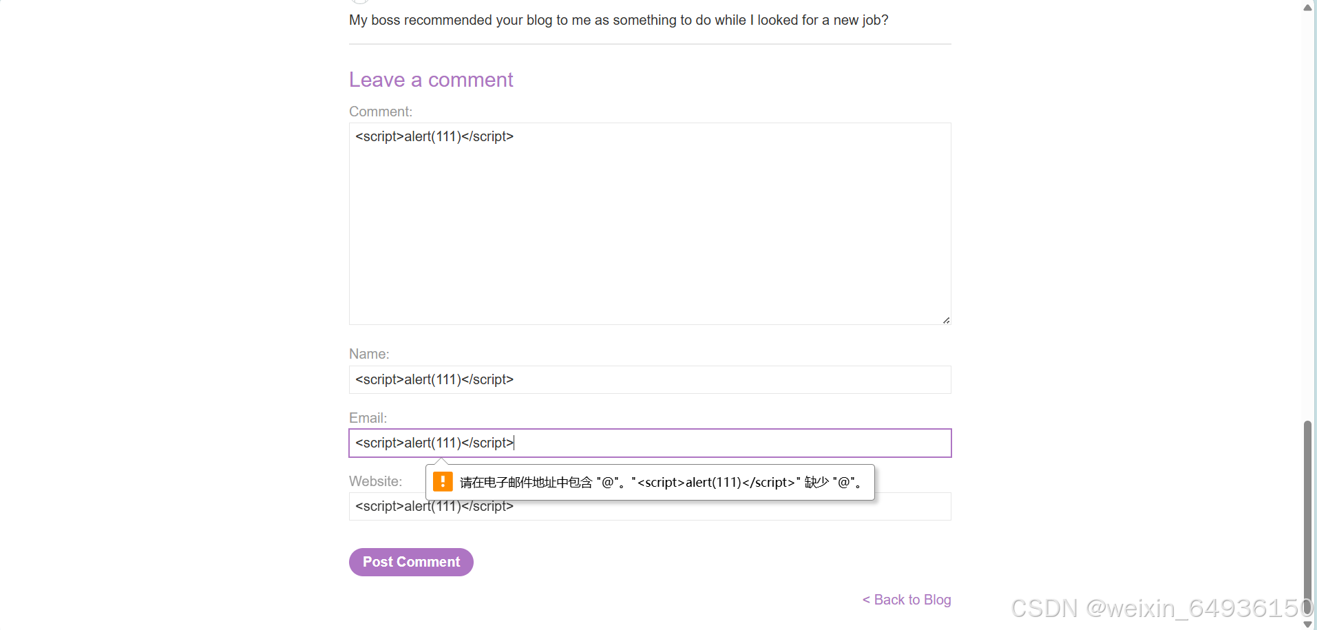 进到网页后发现有评论框,这些一般都和数据库连接,尝试全部插入一下