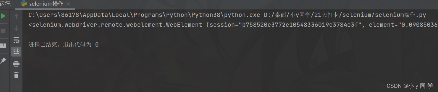 from selenium.webdriver.common.by import By # 获取第一个元素 a = browser.find_element(by=By.ID, value="s_is_result_css") # 引号里面是id属性值 # 获取多个元素 b = browser.find_elements(by=By.ID, value="s_is_result_css") print(a, b)