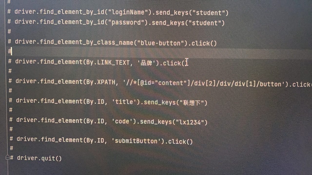 Selenium自动化之8种元素定位方式 八种定位元素标签: id name class_name ; tag_name ;超链接: link_text partial_link_text ; XPath CSS ;------------------------------------------link_text : 全部匹配driver