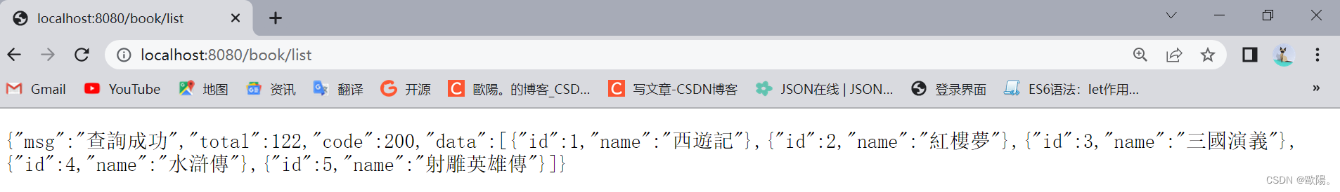 return Result.ok(200,"加载成功",new Book(1,"西遊記"));