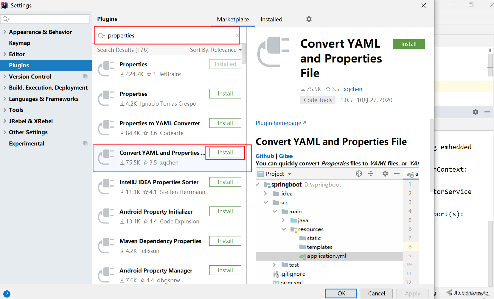 安装 Convert YAML and Properties File 的插件