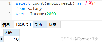 9. 使用聚合函数查询YGGL数据库中收入大于2000元的员工的人数。