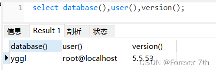 17. 获得当前所选数据库名、当前用户和MyQL版本信息。