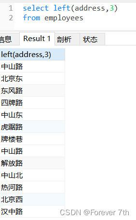 11. 查询YGGL数据库中EMPLOYEES表中住址的最左侧的3个字符。