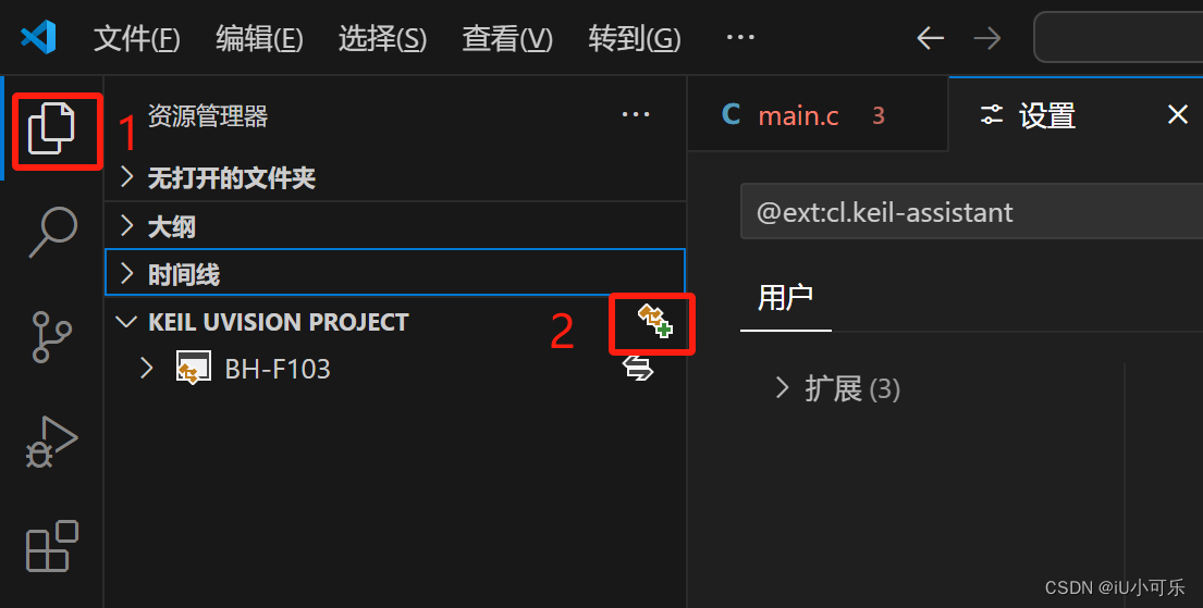 步骤3:安装完Keil Assistant插件后,点击扩展设置。