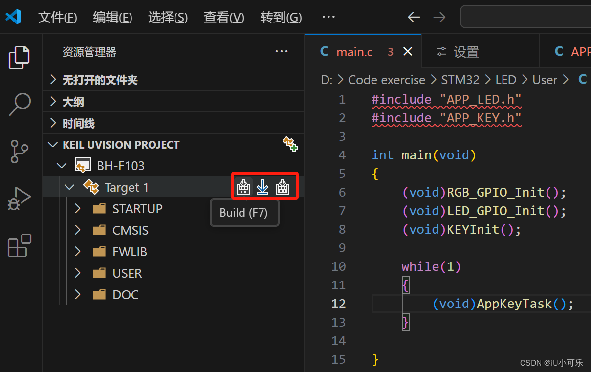 步骤5:导入keil5工程,点击2图标,