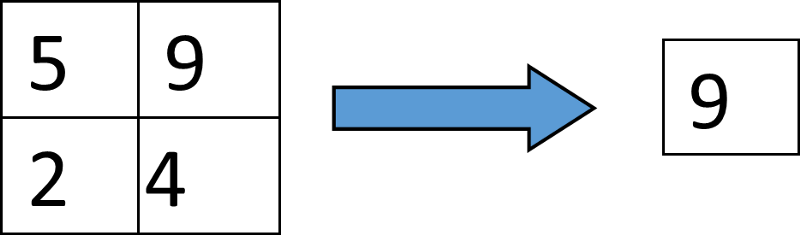 最大池化:最大池化从特征图的每个局部区域获取最大值。例如,如果我们使用一个2×2的窗口来应用最大池化,则位置(i,j)处的输出计算为: