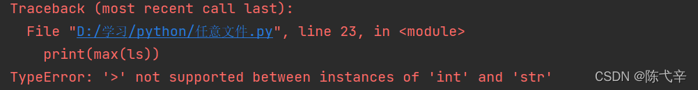 注2: 在函数max()和min()中的列表,元组,集合中的元素只能是相同类型才能比较