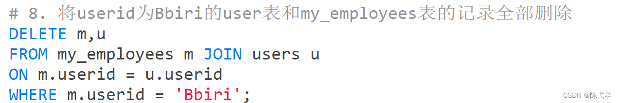 8. 将userid为Bbiri的user表和my_employees表的记录全部删除