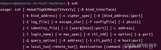 虚拟机linux使用ssh远程连接VScode(保姆级教学) 首先检查虚拟机中的linux有没有安装ssh在终端中输入命令ssh然后回车出现图片中的这些就说明已经安装好了ssh,如果没有出现就说明没有安装ssh安装ssh按照如下步骤:我这里已经安装过了,如果提示失败就说明网络没有连接好,更改虚拟机的网络适配器设置。