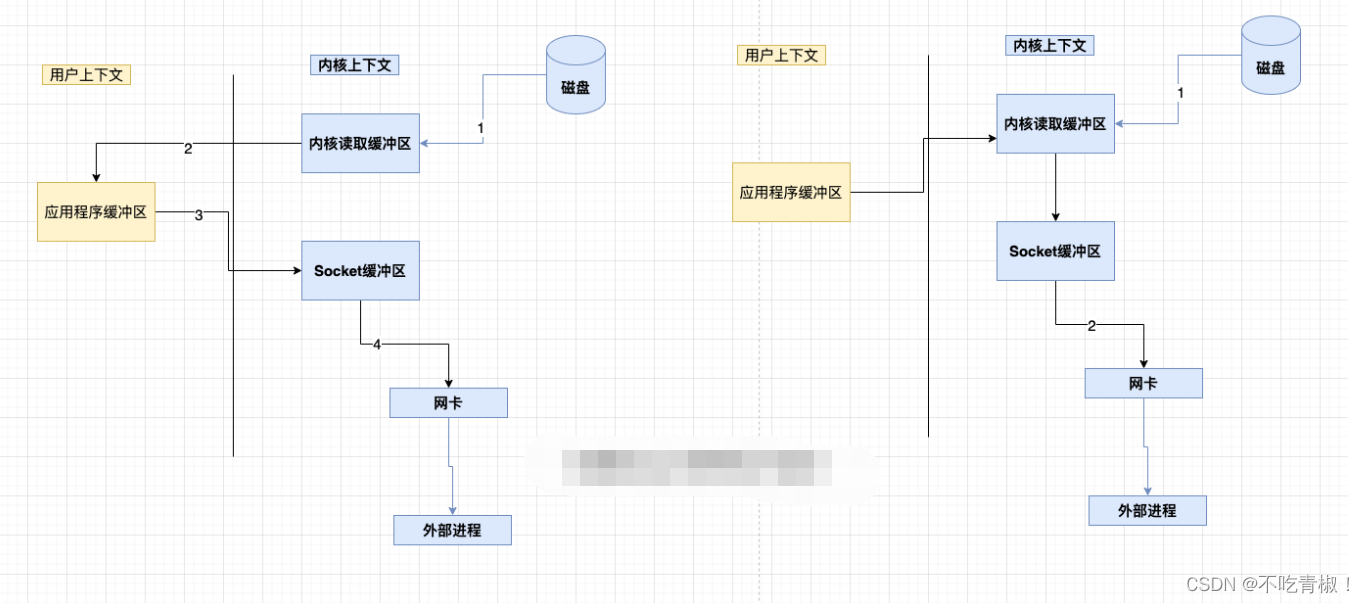例子:将一个File读取并发送出去(Linux有两个上下文,内核态,用户态)