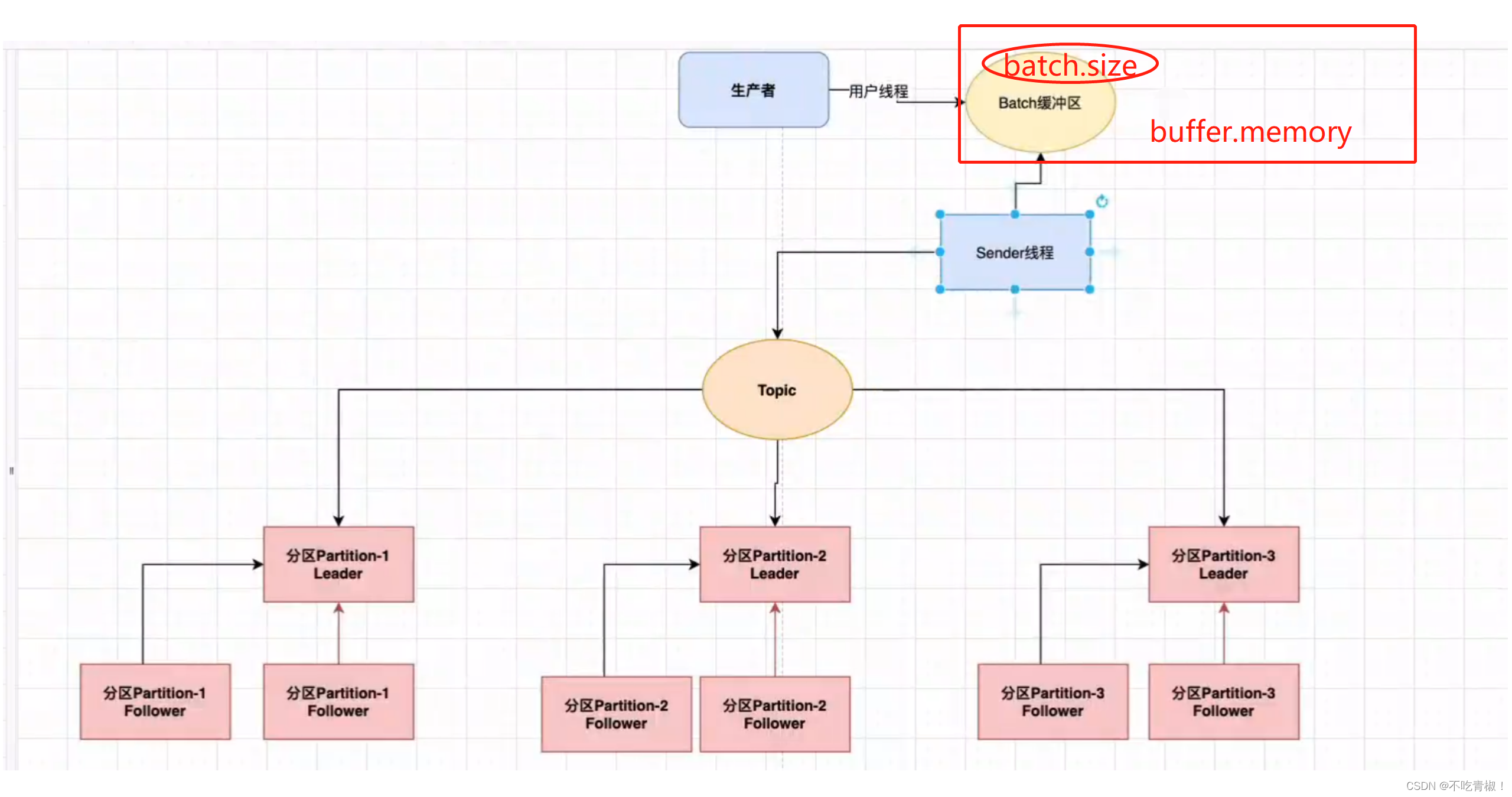 生产者发送到broker里面的流程是怎样的呢,一个 topic 有多个 partition分区,每个分区又有多个副本