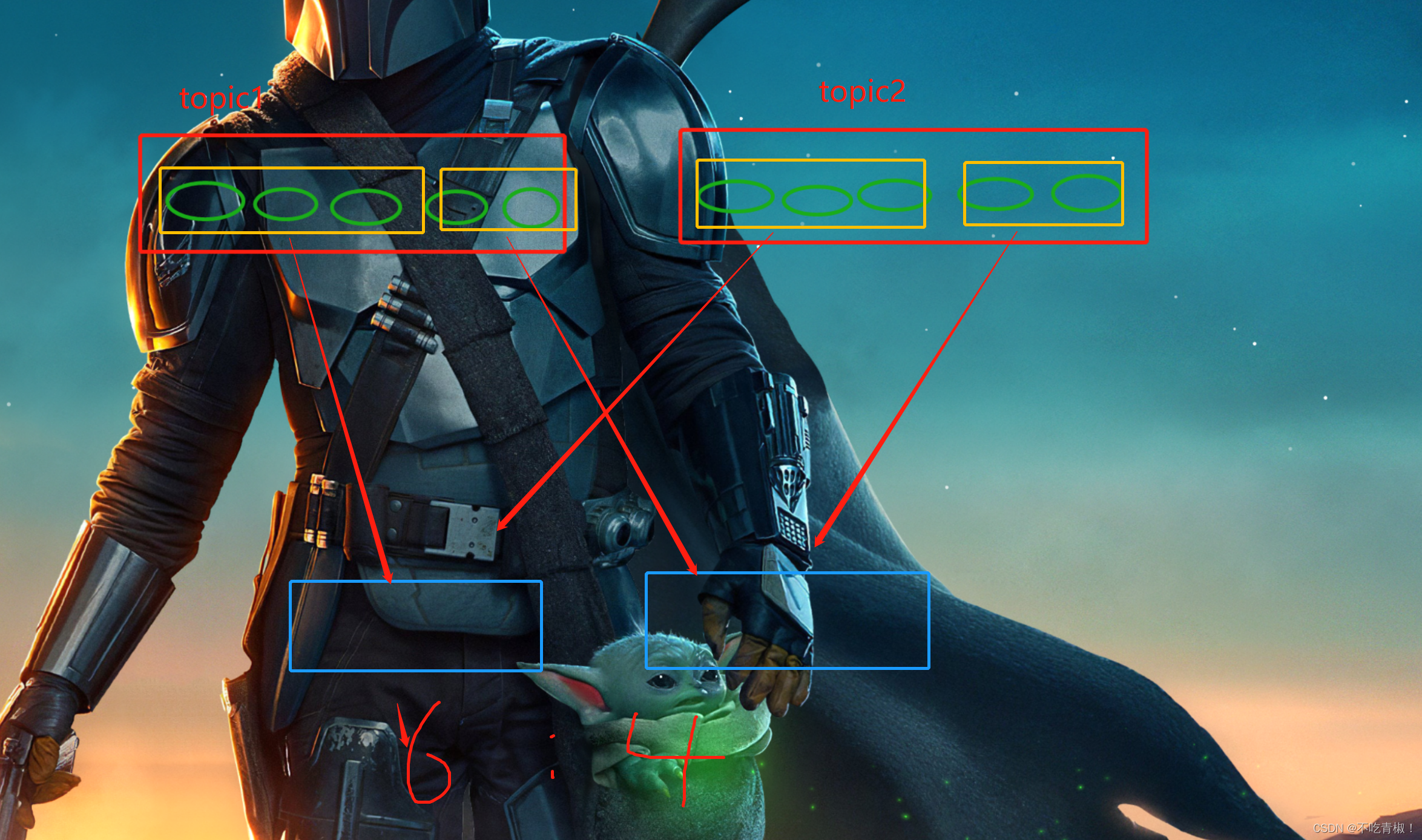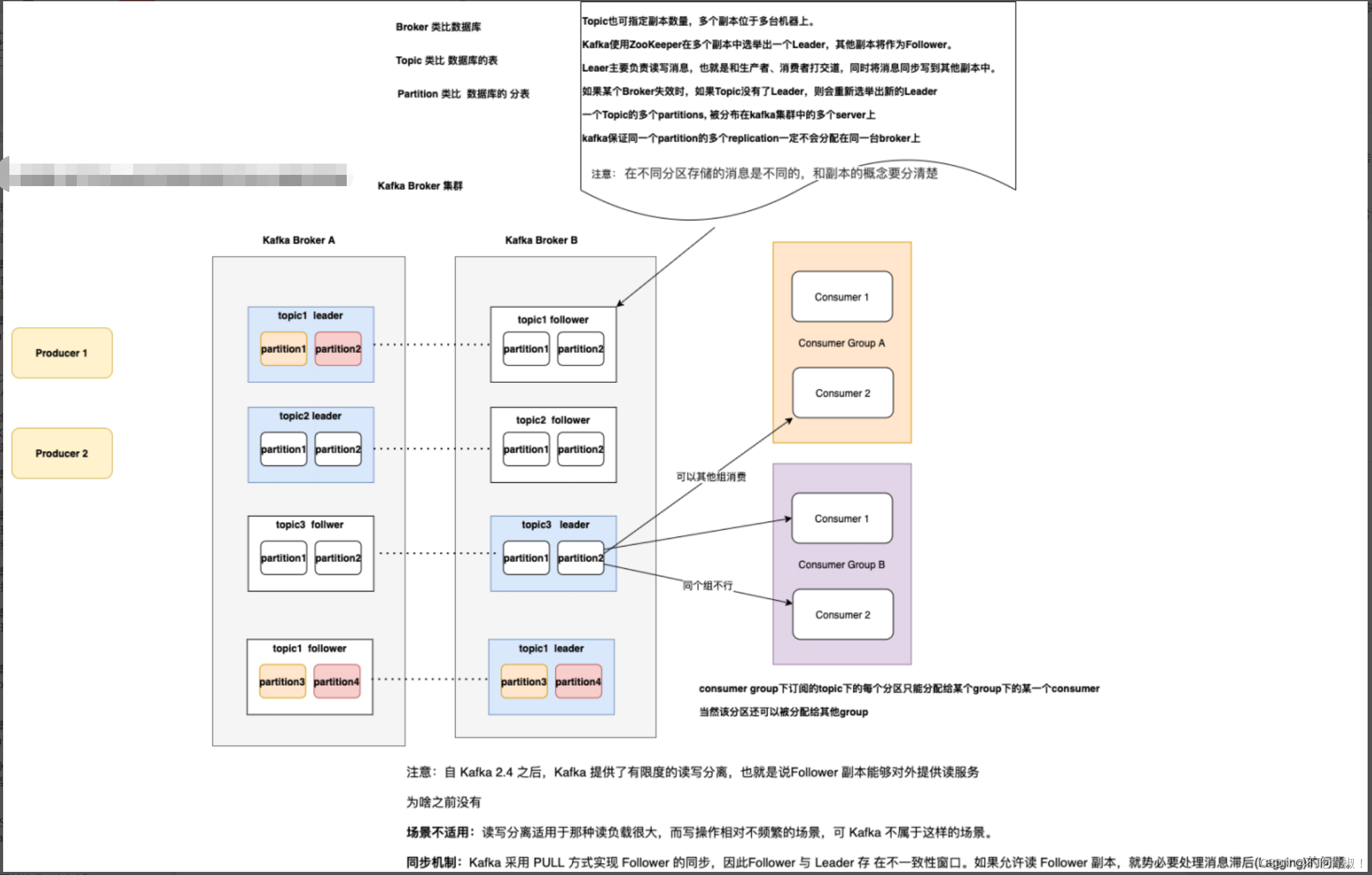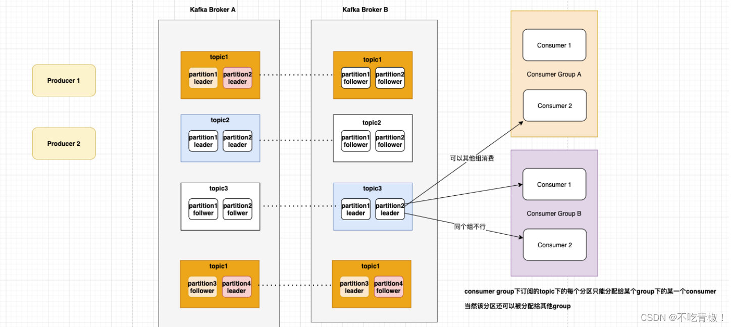 - 一个主题topic可以有多个消费者,因为里面有多个partition分区 ( leader分区)