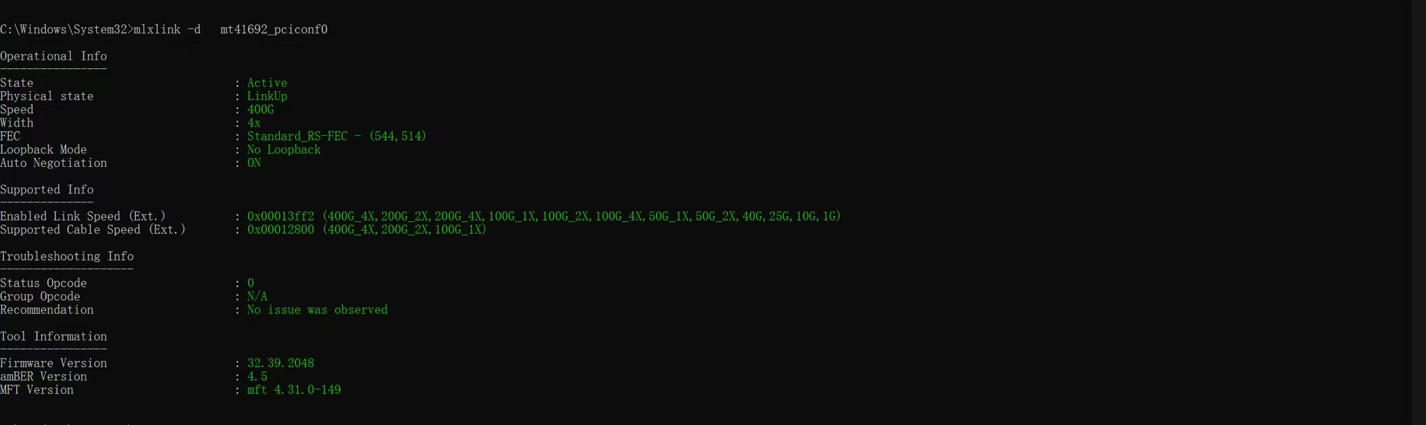 本文主要面向初学者讲解Mellanox网卡在Windows下的常用指令及报错原因。本文所用示例网卡:ConnectX-7 CX71343DAC-WEAF_FB,NVIDIA BlueField-3 SuperNIC 900-9D3B4-00PN-EA0。