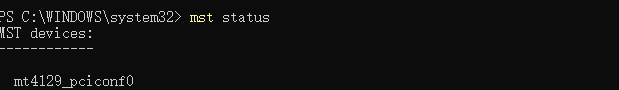 运行此命令会列出所有 Mellanox 设备及其 MST 设备名,后续的查询或其他操作都需要使用此命令列出的设备名称如下图所示的 mt4129_pciconf0 。