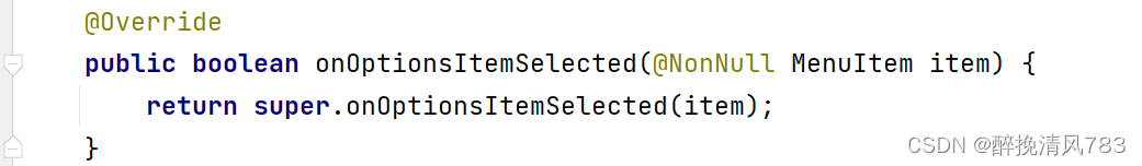 2.onOptionsItemSelected()方法返回true,代表操作结束,该方法调用父类的默认实现(super.onOptionsItemSelected(item))
