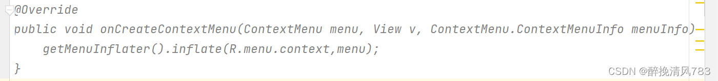 2.上下文菜单(ContextMenu):长按某个view不放,就会在屏幕中间弹出ContextMenu。