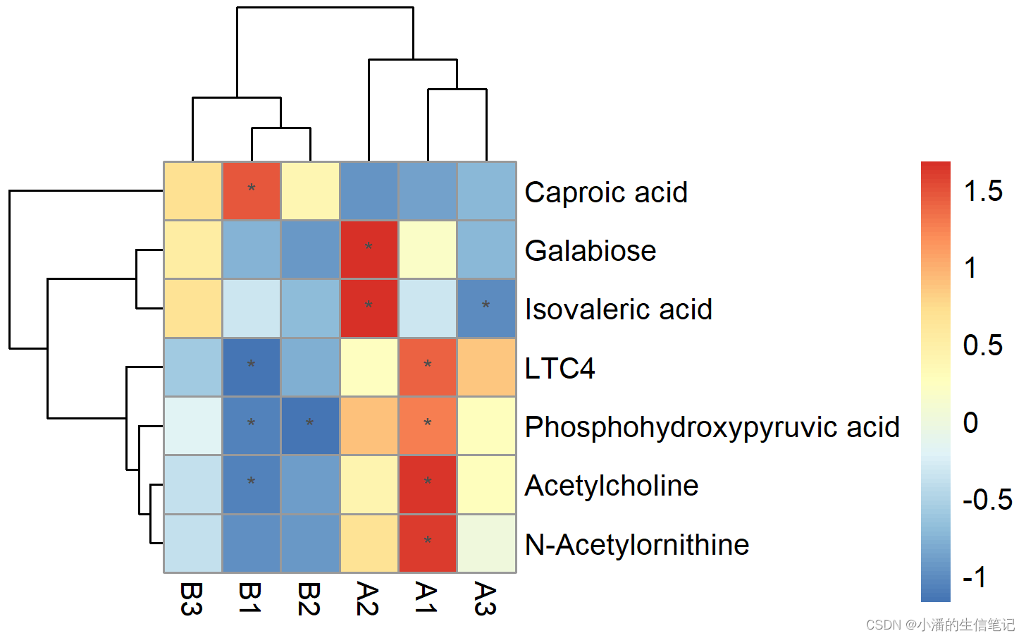 热图是一种很常见的图,其基本原则是用颜色代表数字,让数据呈现更直观、对比更明显。常用来表示不同样品组代表性基因的表达差异、不同样品组代表性化合物的含量差异、不同样品之间的两两相似性。