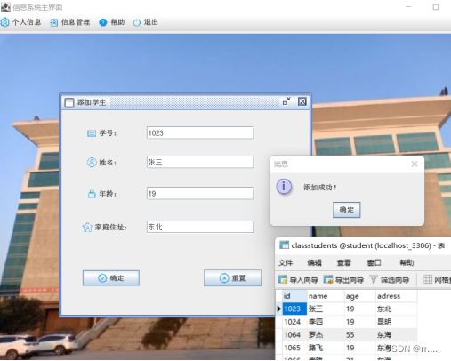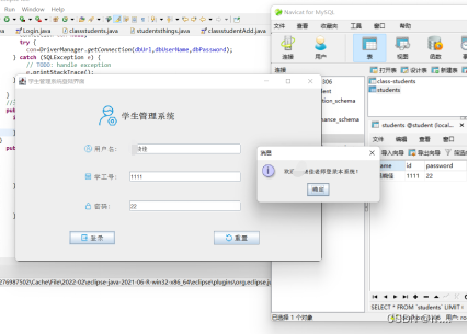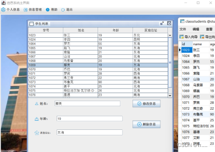运行截图:(登录界面,主界面,学生列表)