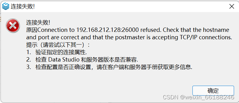 关于Data Studio连接失败可能原因