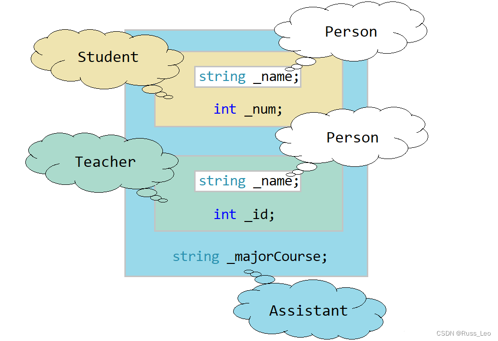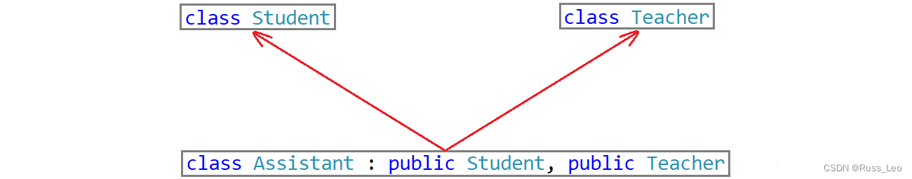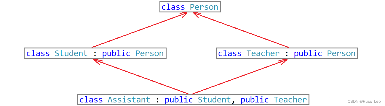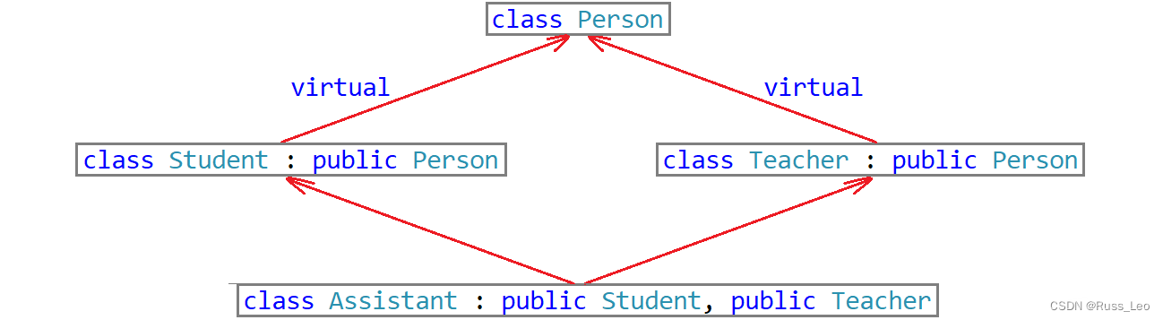 Assistant对象是多继承的Student和Teacher,而Student和Teacher当中都继承了Person,因此Student和Teacher当中都有_name成员,若是直接访问Assistant对象的_name成员会出现访问不明确的报错。