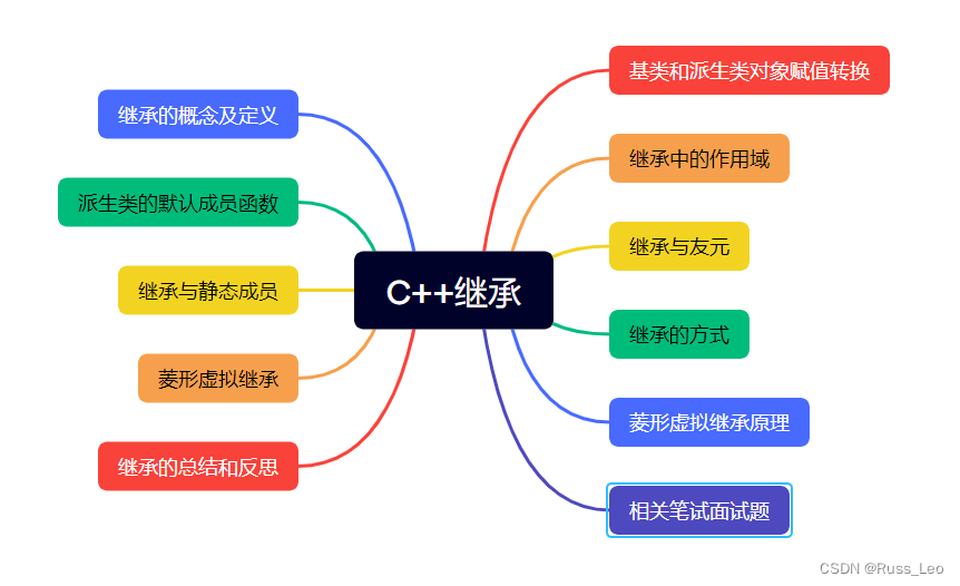 - 解决方案:C++通过引入虚继承(Virtual Inheritance)来解决菱形继承中的二义性问题。虚继承确保基类只被继承一次,从而在派生类中只有一个基类的副本。
