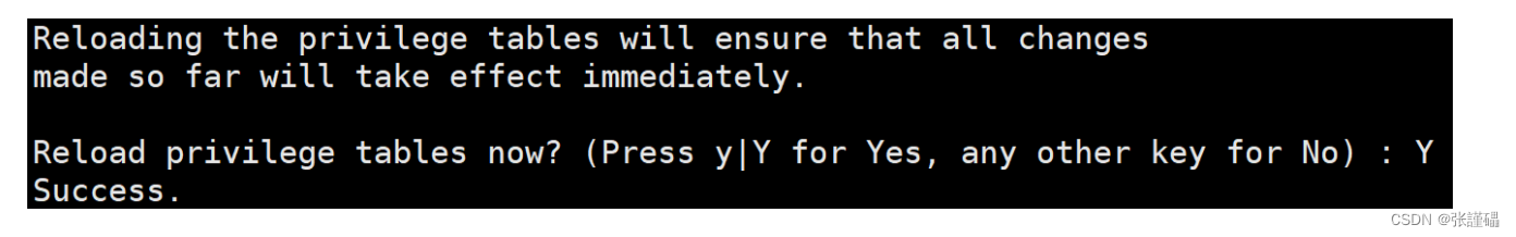 是否加载权限表(前面的设置立即生效),这里选择输入“Y”。(加载)
