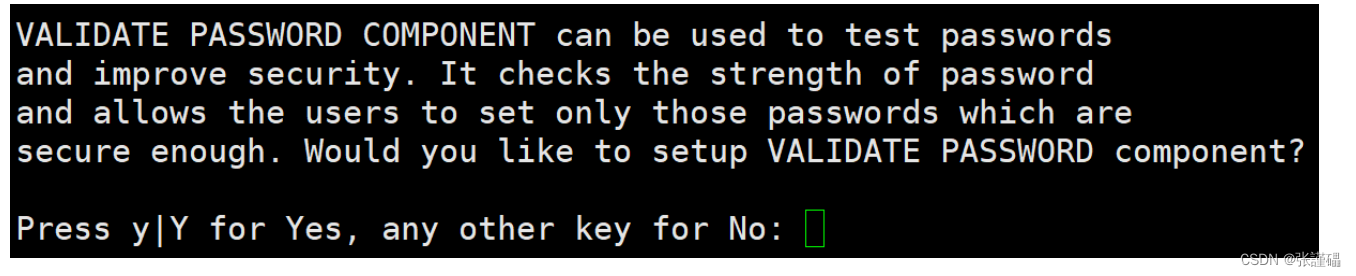 数据库的安全性,允许用户仅设置强密码。按 Y 接受或按其他键跳过。这