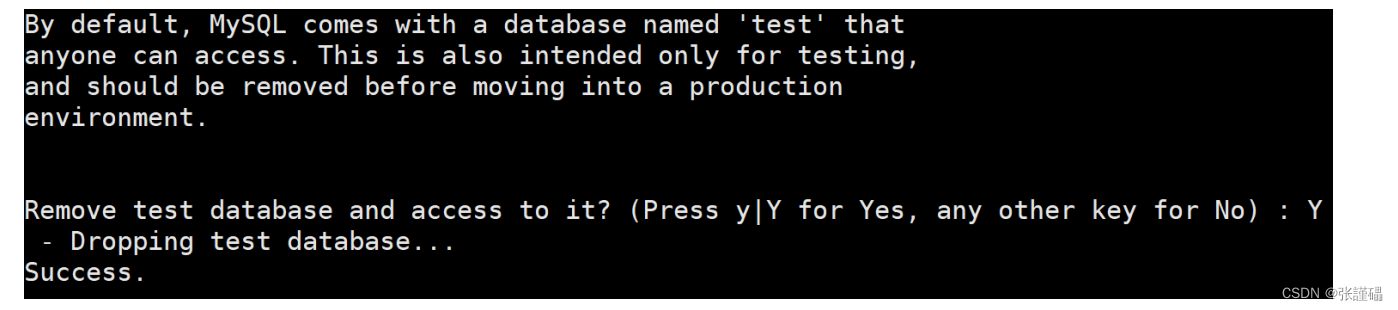 是否删除 test 数据库,这里选择输入“Y”。(删除 test 数据库)
