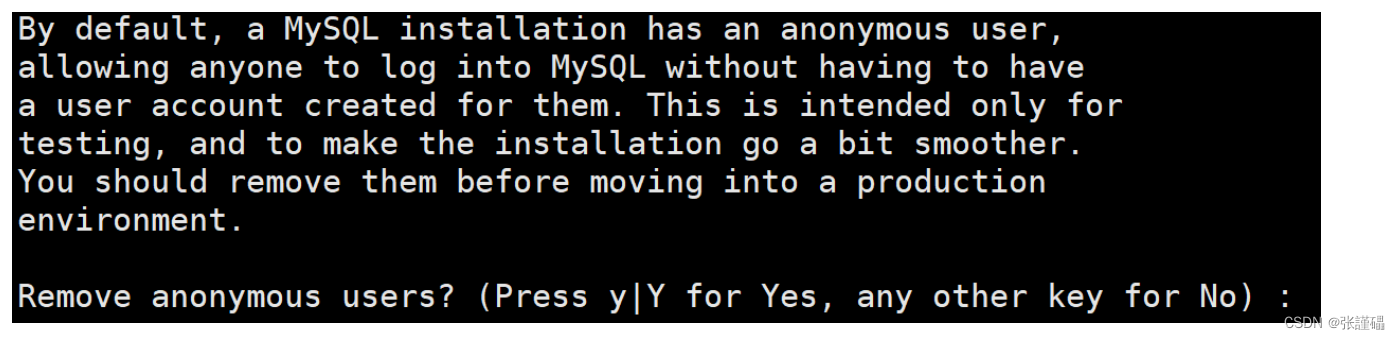 是否删除匿名用户,这里选择按“回车”键跳过。(不删除匿名用户)