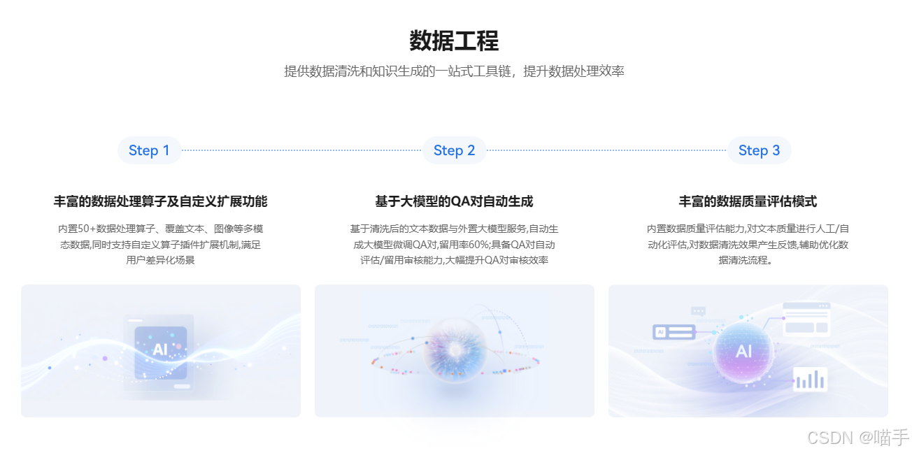不仅如此,ModelEngine还提供数据清洗和知识生成的一站式工具链,提升数据处理效率,参考如下: