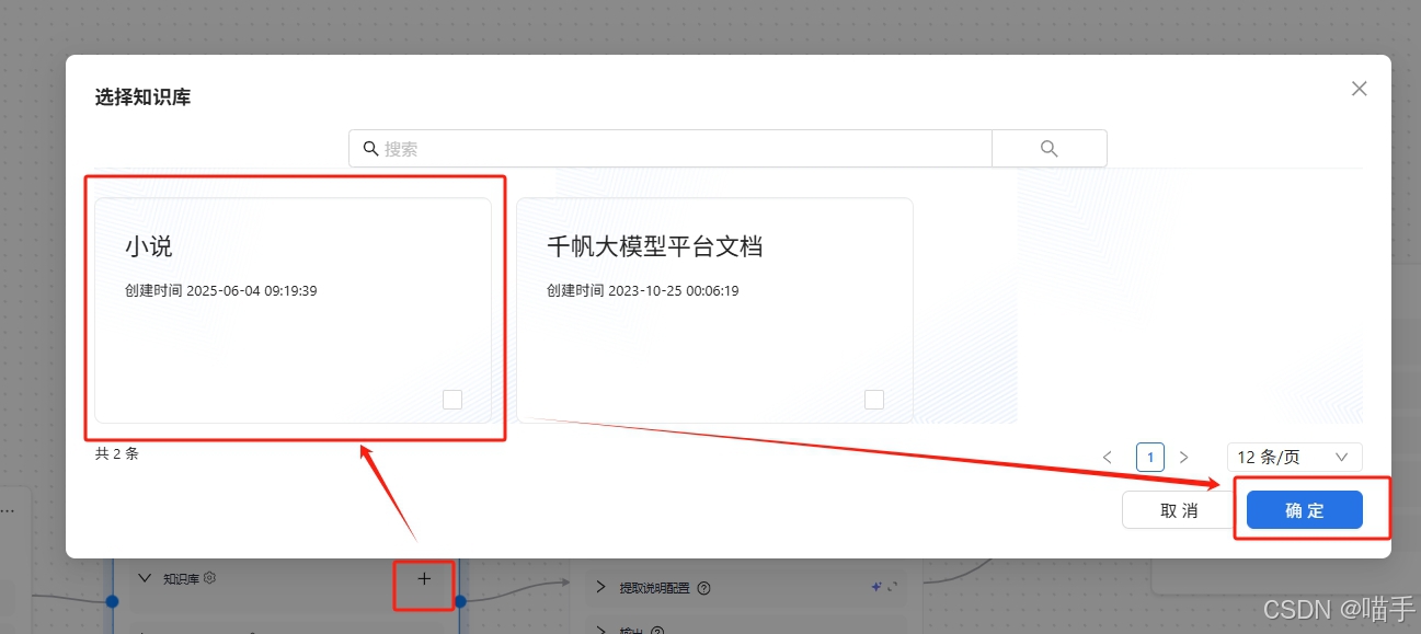 3. 点击知识库添加知识库,实现基于向量或关键词的知识内容检索。