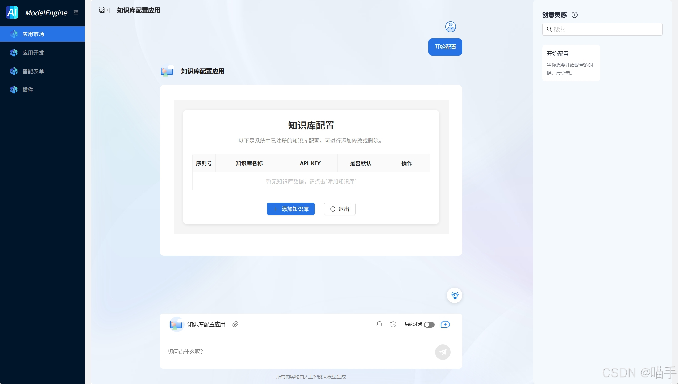 7. 点击创意灵感可支持提前配置常用问题,并按一级分类管理。