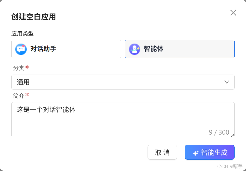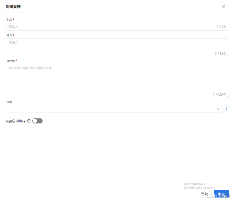 - 填写简介内容,ai会根据简介自动生成名字和提示词。