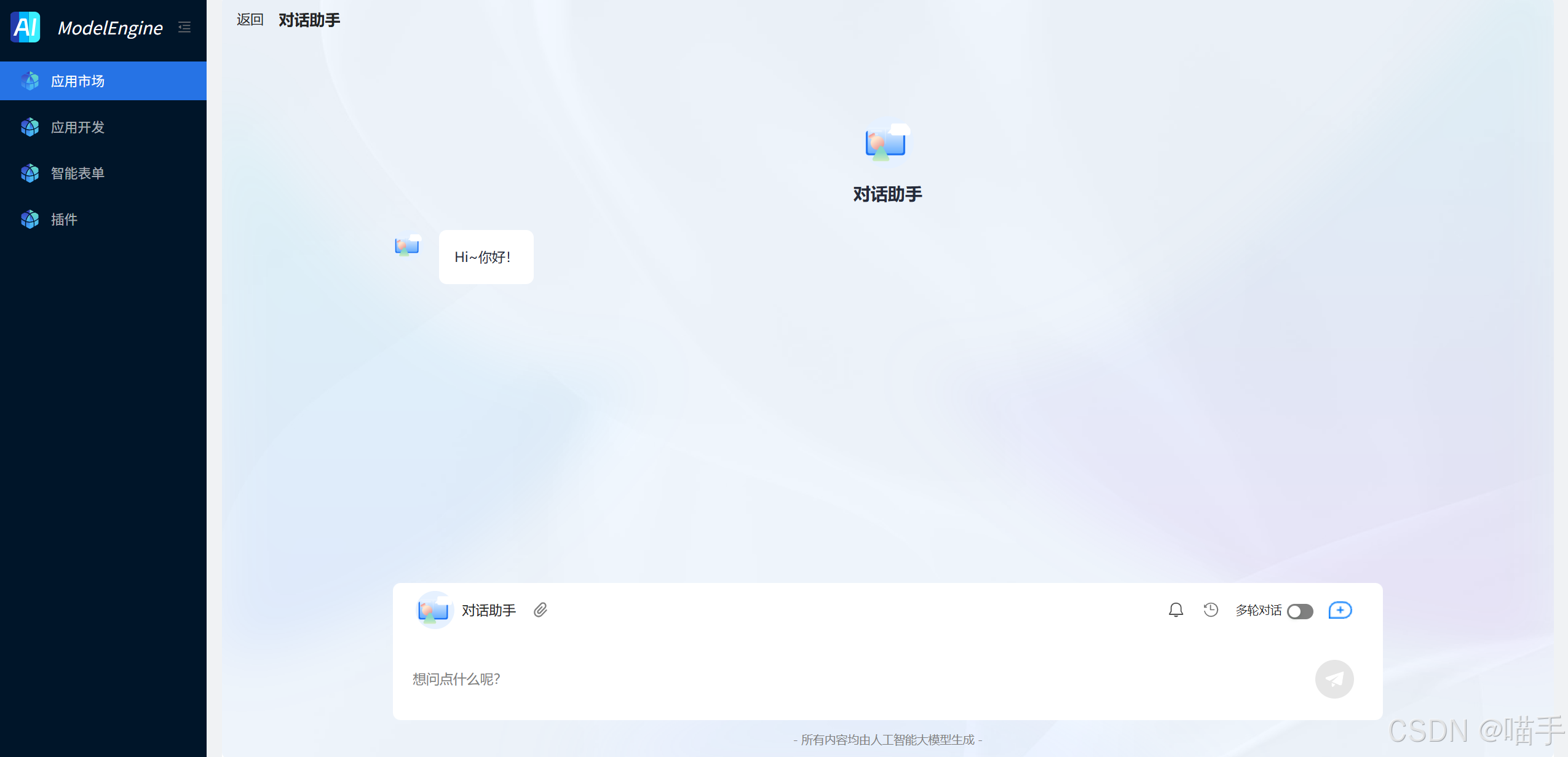 - 点击大模型调用预设的大语言模型,实现问答等能力。