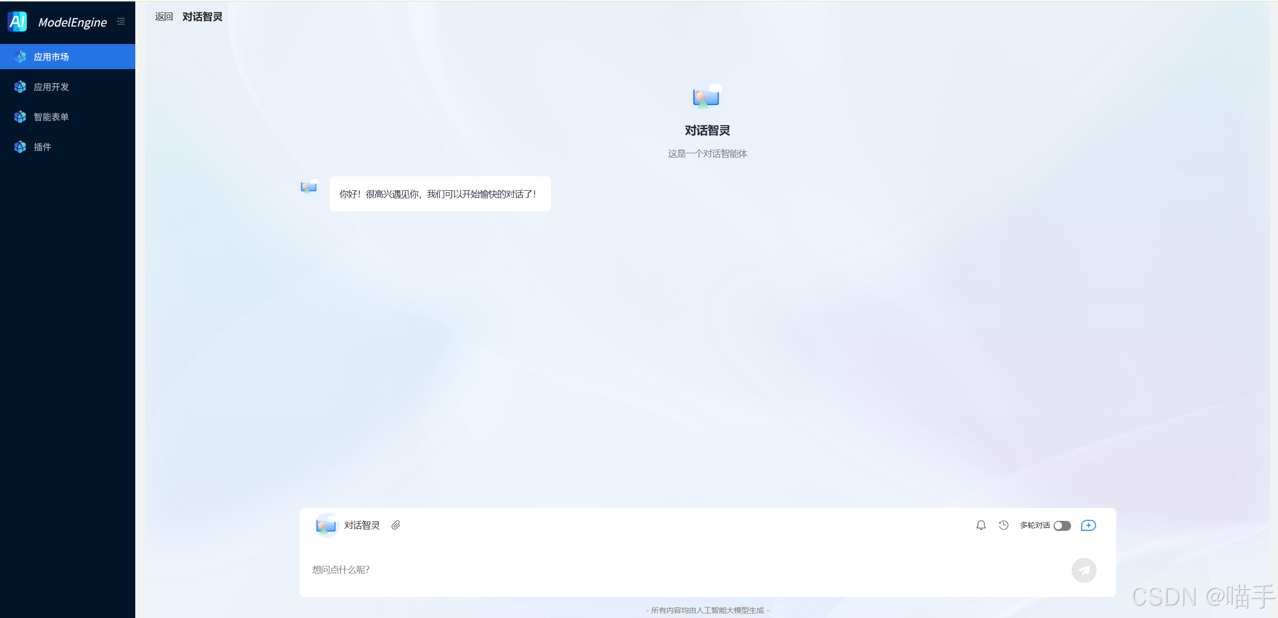 智能体开发与调试:开发者可以通过ModelEngine平台的图形化界面,轻松创建和调试智能体。平台提供了丰富的工具和模板,支持开发者快速调试智能体的行为,修改其响应策略,从而提高开发效率。