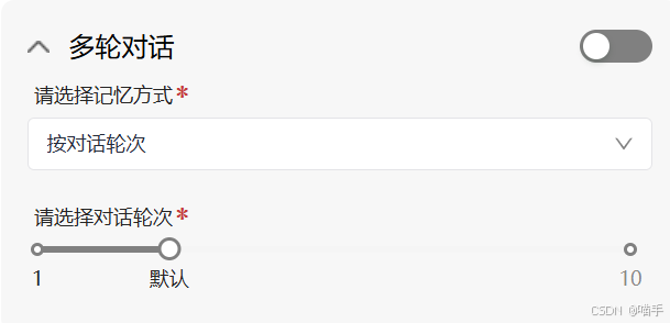 5. 点击多轮对话可配置是否启用对话记忆,让大模型能记住前文内容。