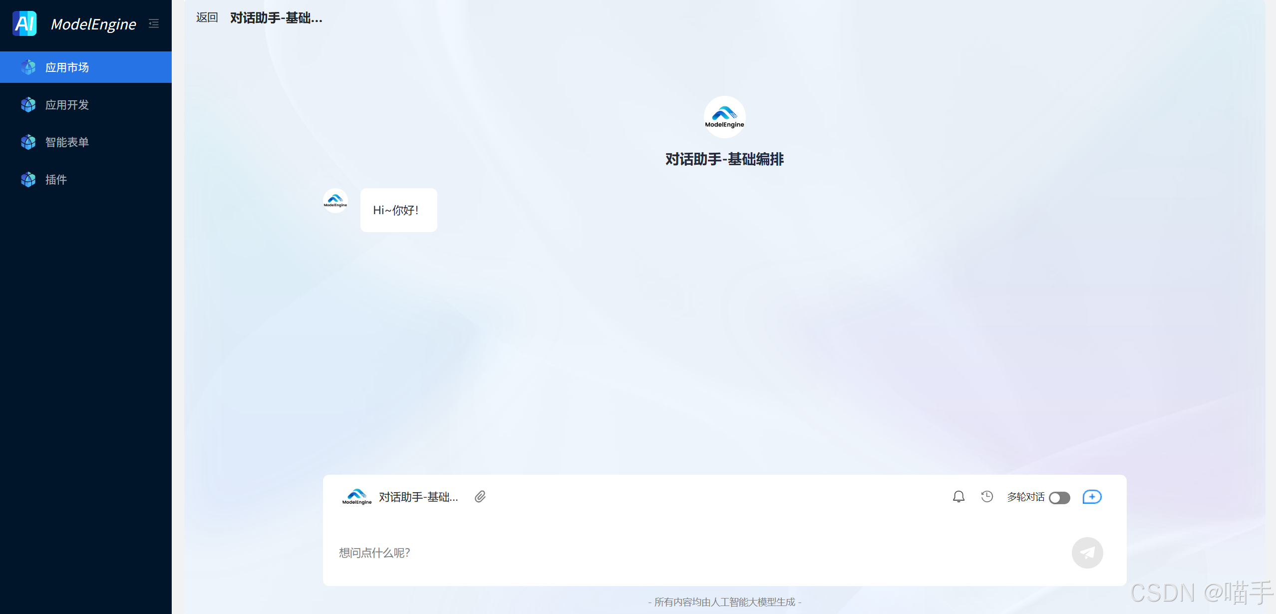 就算你没有编程基础,也能在 ModelEngine 上快速创建一个对话式 AI 助手。我们这次以“对话助手-基础编排”为例,通过ai自动生成的模式,快速编排一个具备逻辑处理和交互能力的智能体。