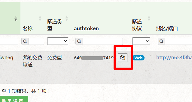 将 authtoken= 后面内容改成刚才复制的authtoken,就可以识别到我们的隧道