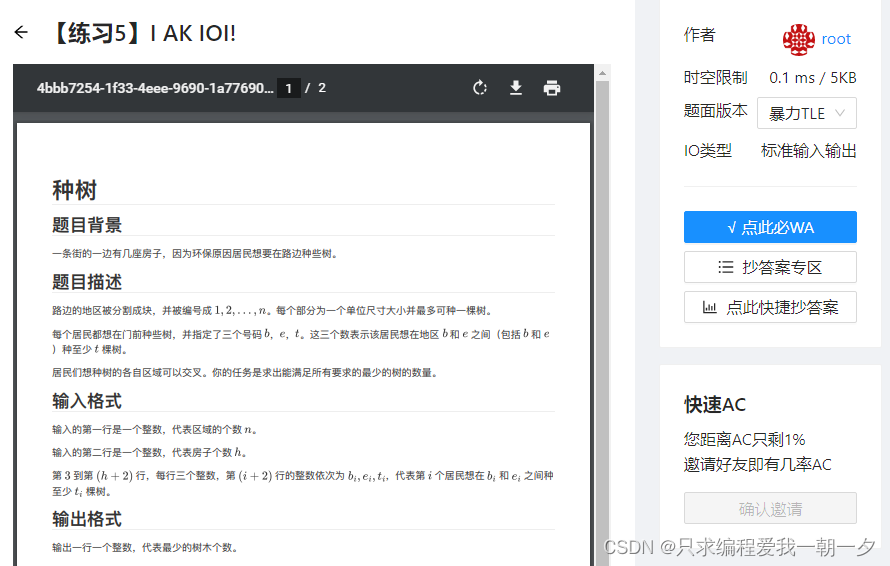体验一下压行的快乐~ 练习2:⽺⽺吃草 题⽬描述 ⽺村的n个⼩草场是连续分布的,编号从1到n,每个⼩草场⽺数不同,合格⼤草场(连续的⼩草场组成)不会超过 t只⽺,现要求选出最⻓的⼤草场 输⼊ 第⼀⾏两个整数n,t, 第⼆⾏n个整数,两整数之间⼀个空格分开,第i个数ai表示第i个⼩草场上有ai只⽺。输出 输出⼀⾏两个数,表示起点与终点,中间空格分开,起点不⼤于终点,⻓度相同输出起点编号较⼩的答案,保证有 答案。总结:压行没用,压行易出错,压行恶心人,千万别压行!算上注释,长度少了3B。
