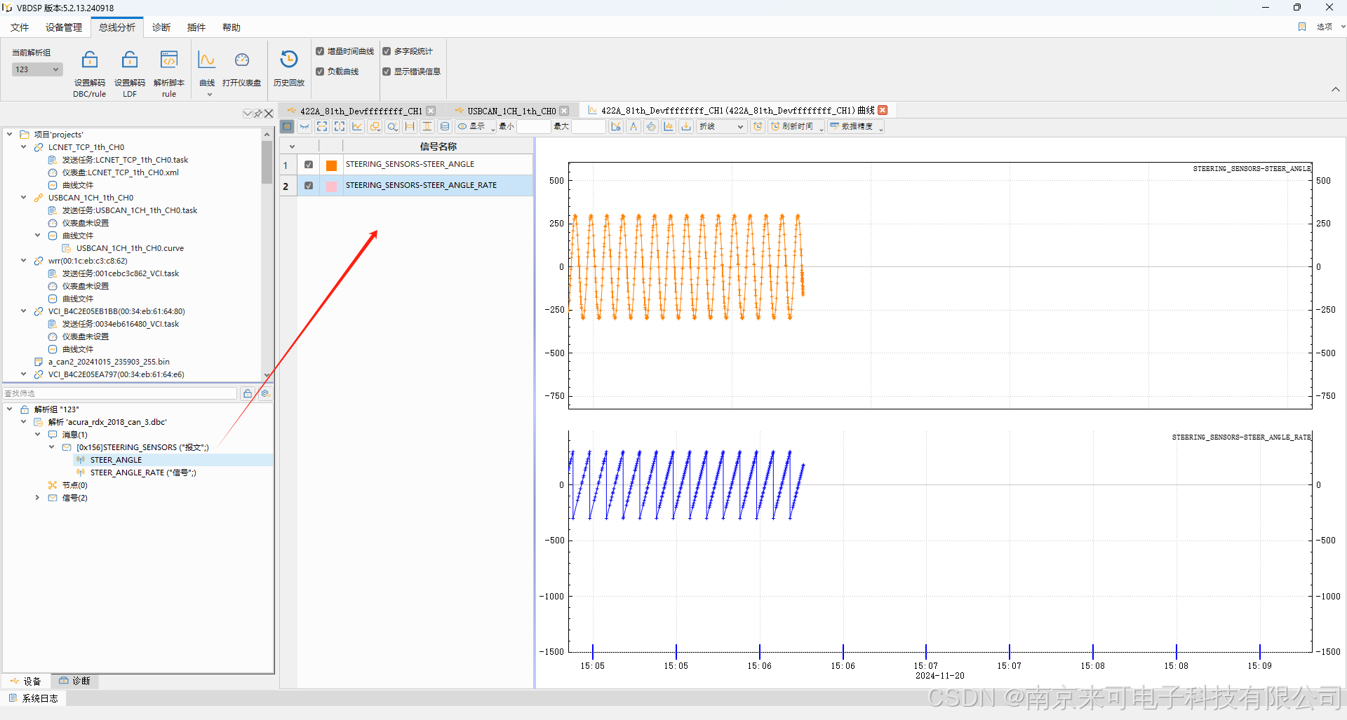 ⑦选择当前解析组,就可以在左侧显示添加好的解析组和信号;
