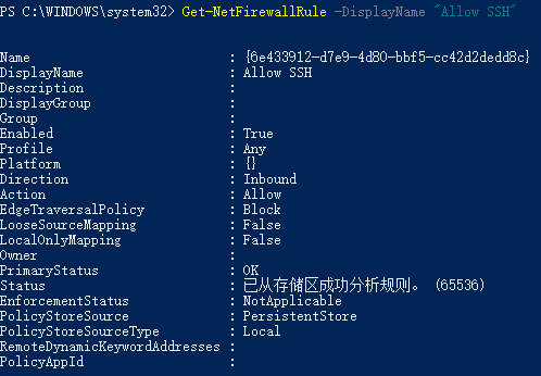 Get-NetFirewallRule -DisplayName "Allow SSH"