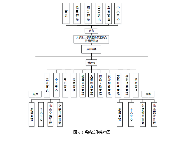 总体上看,大学生二手闲置物品置换交易管理系统具有;用户管理、卖家管理、物品分类管理、免费物品管理、物品交换管理、积分物品管理等功能模块。